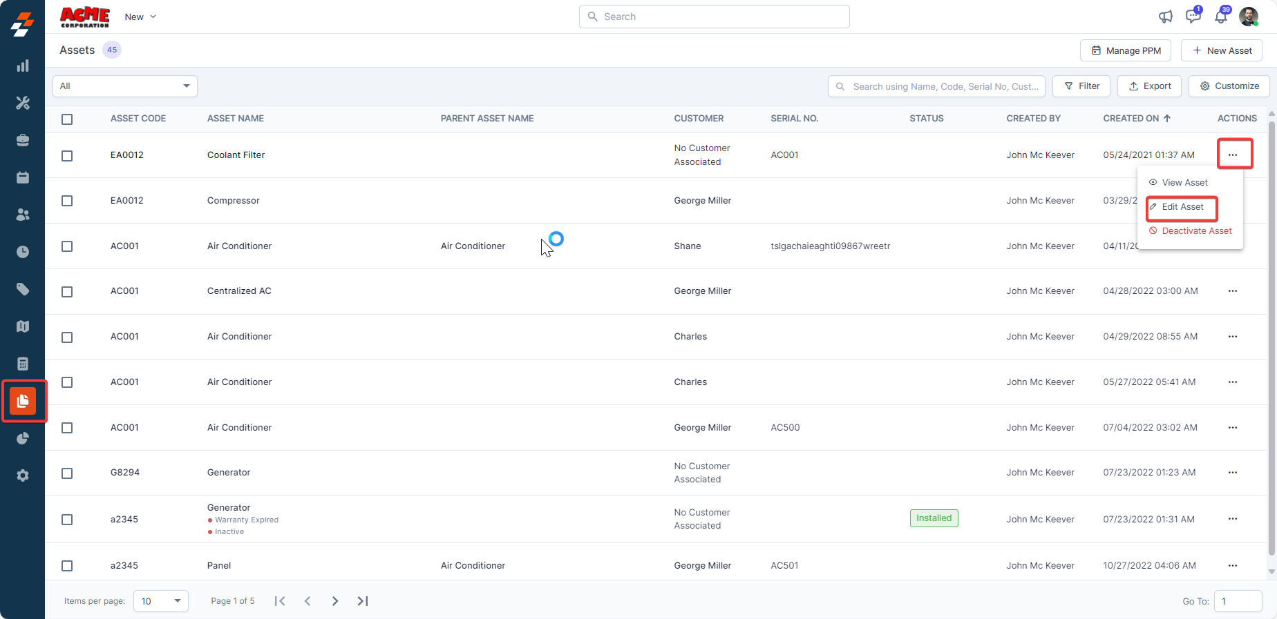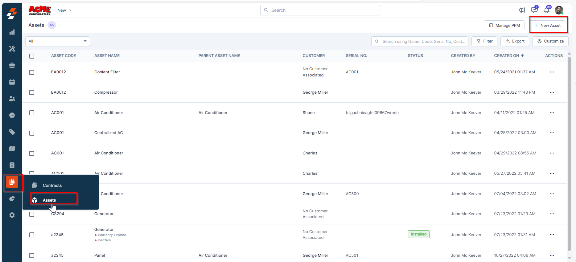 - In the left navigation menu, select Contracts and Assets Management and choose Assets.