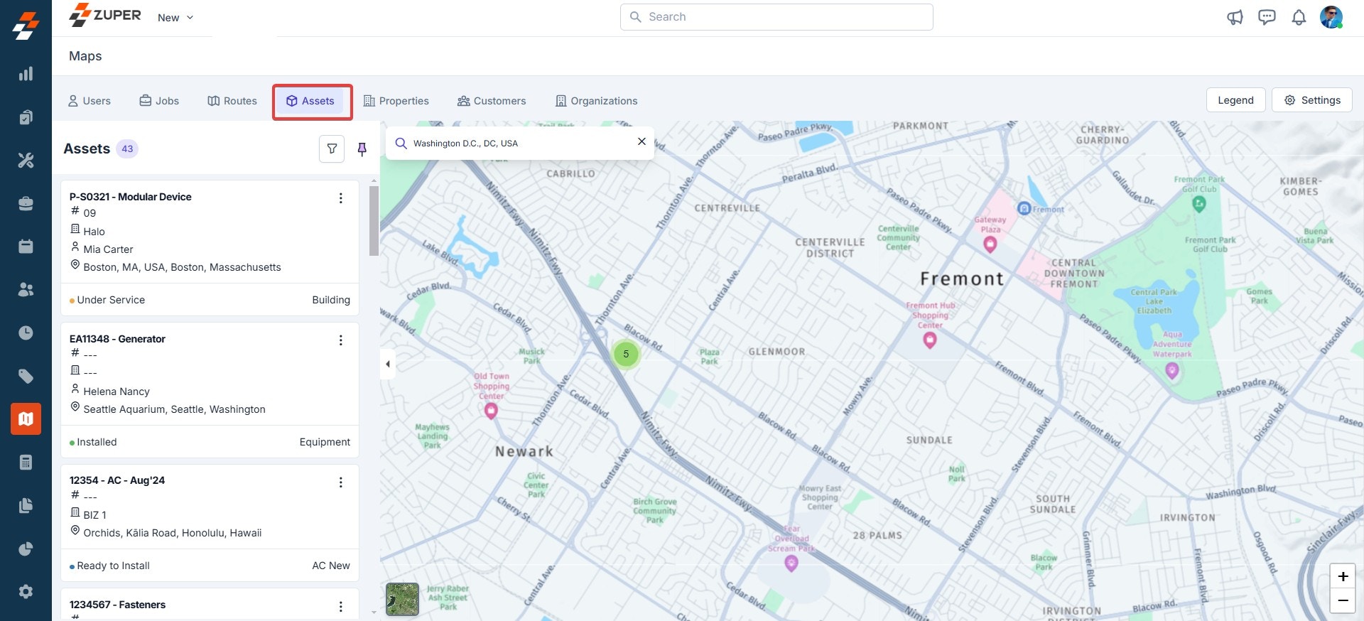 To track the exact location of the assets on the map, follow these steps:- On the maps page, click “Assets” at the top, which lists all the assets created.
