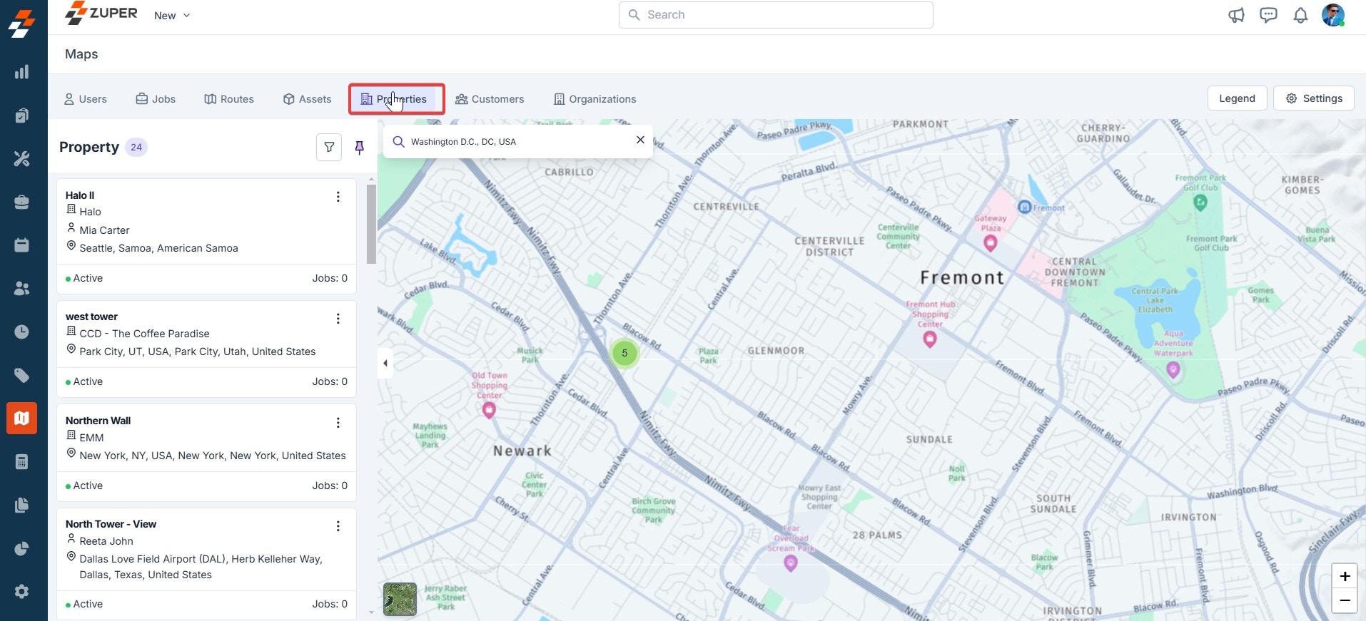 To track the exact location of the property on the map, follow these steps:- On the maps page, click “Properties” at the top, which lists all the properties created.