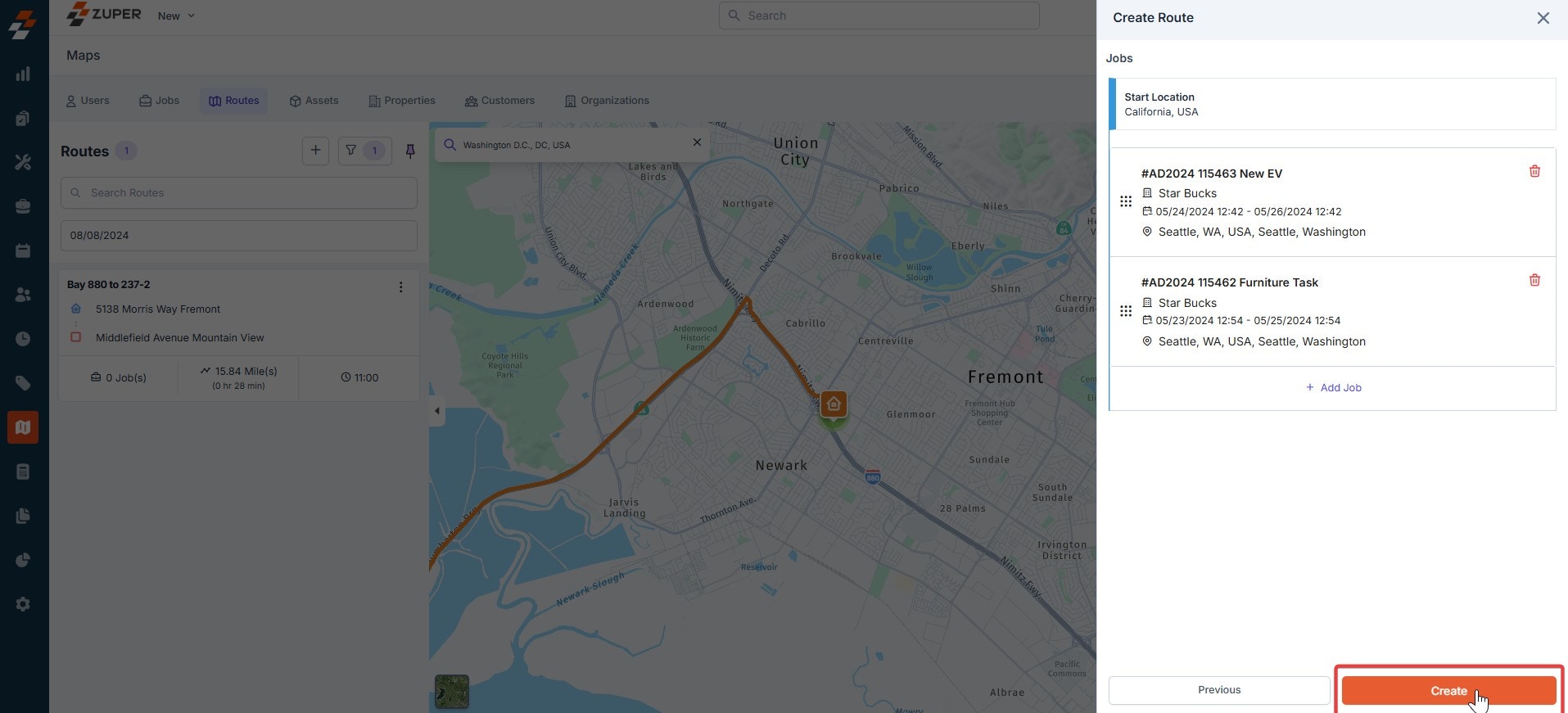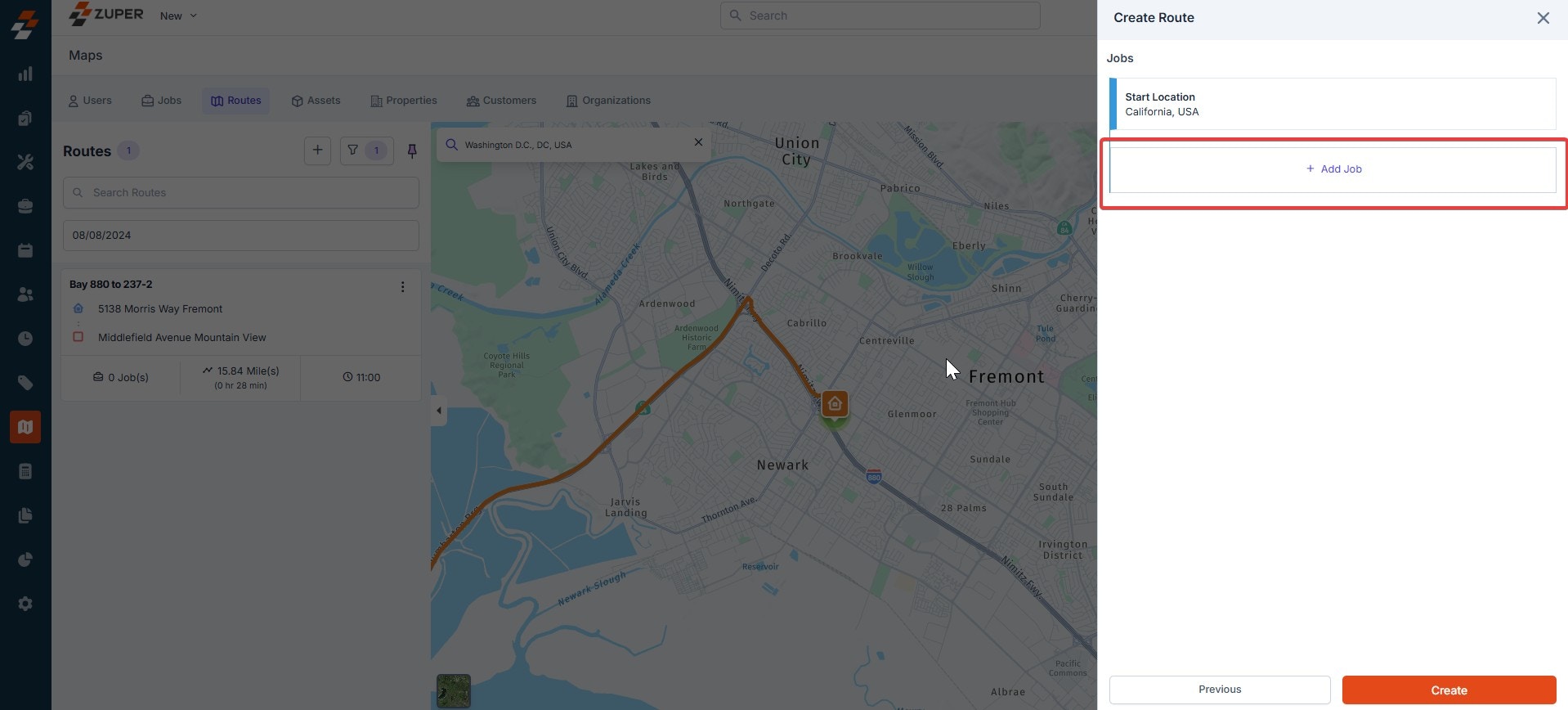 - Once the route has been created, you can add a job on the following page. To do so, click ”+ Add Job.”