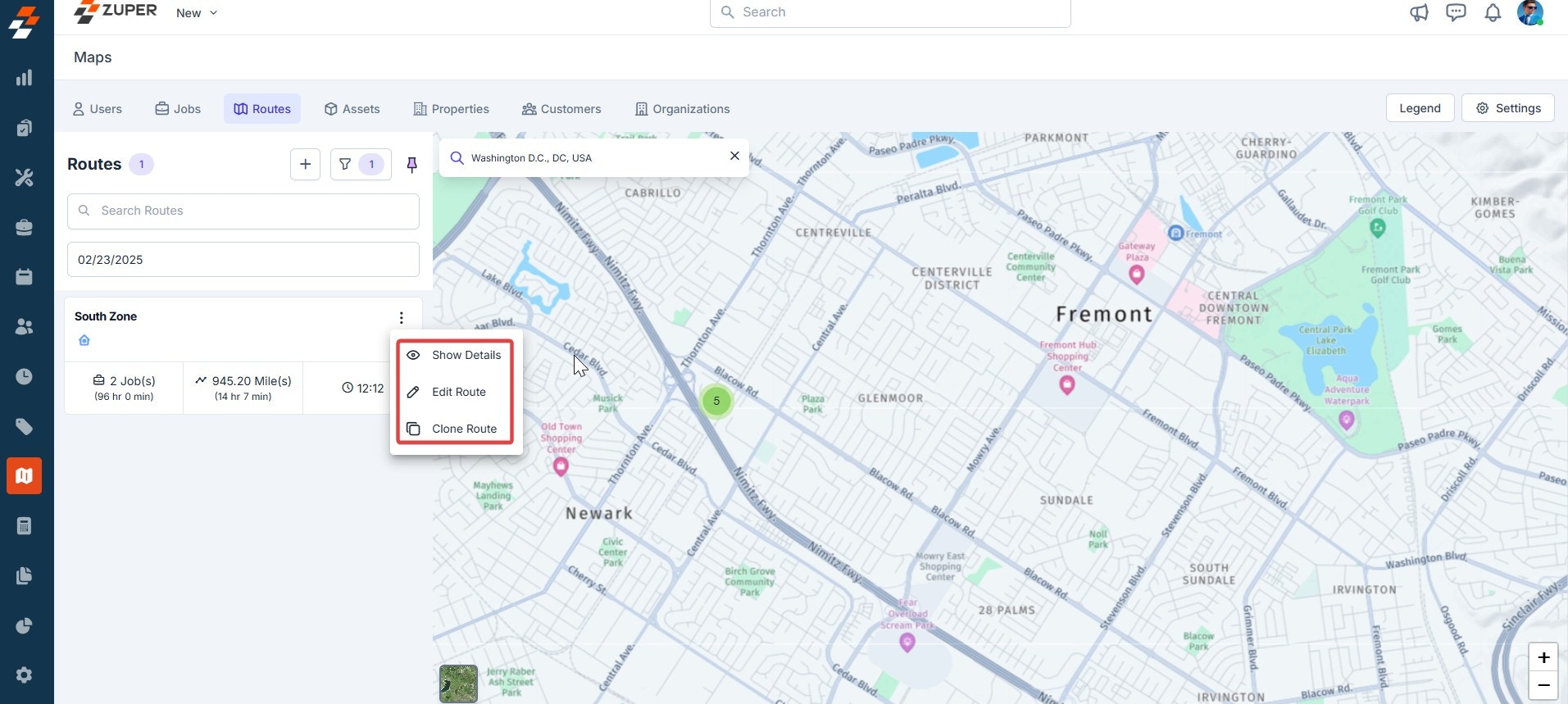 - Once the route has been created, you can view details and edit or clone the route by clicking the “Kebab” icon.