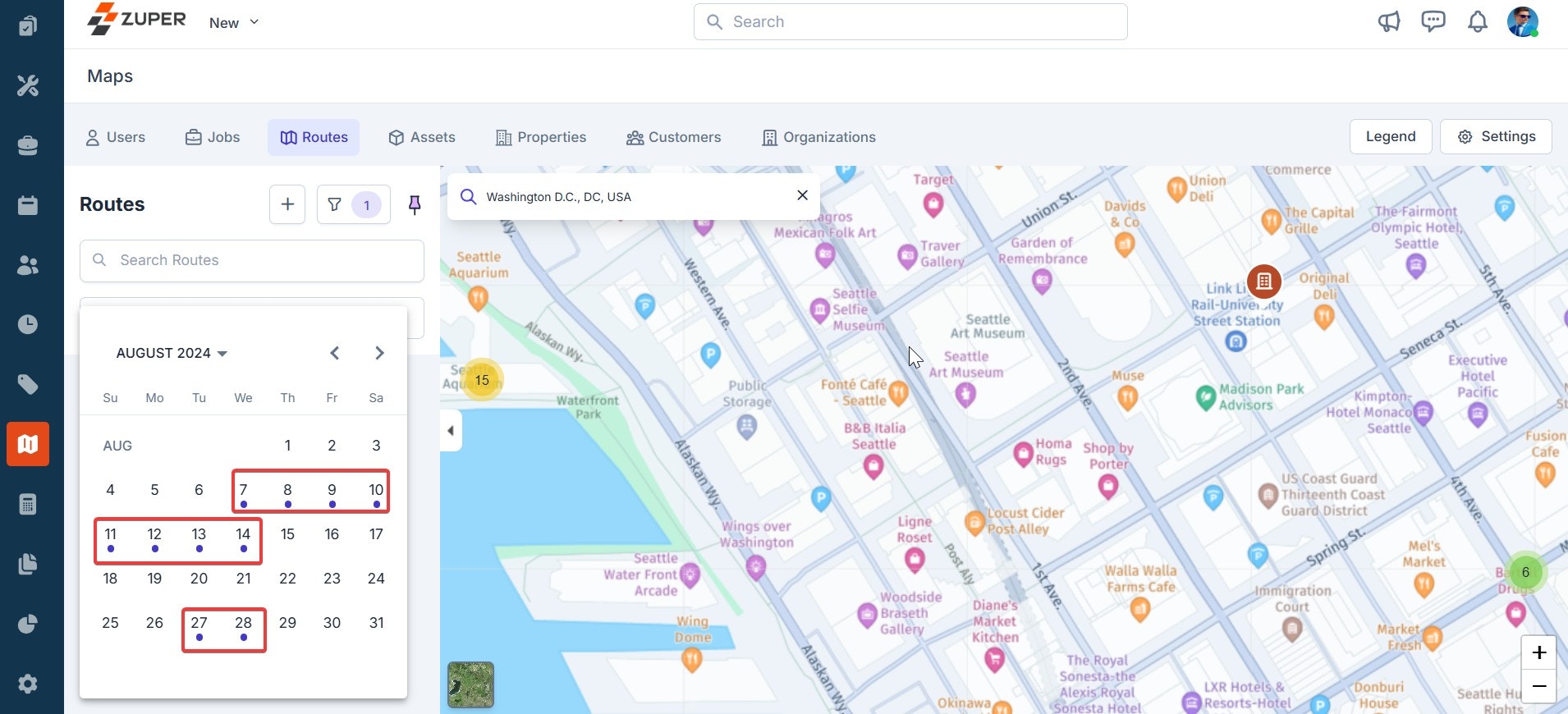 - You can also search and view specific routes on the map. Click the “Filter” icon to search for a route based on the date the picker selects.
