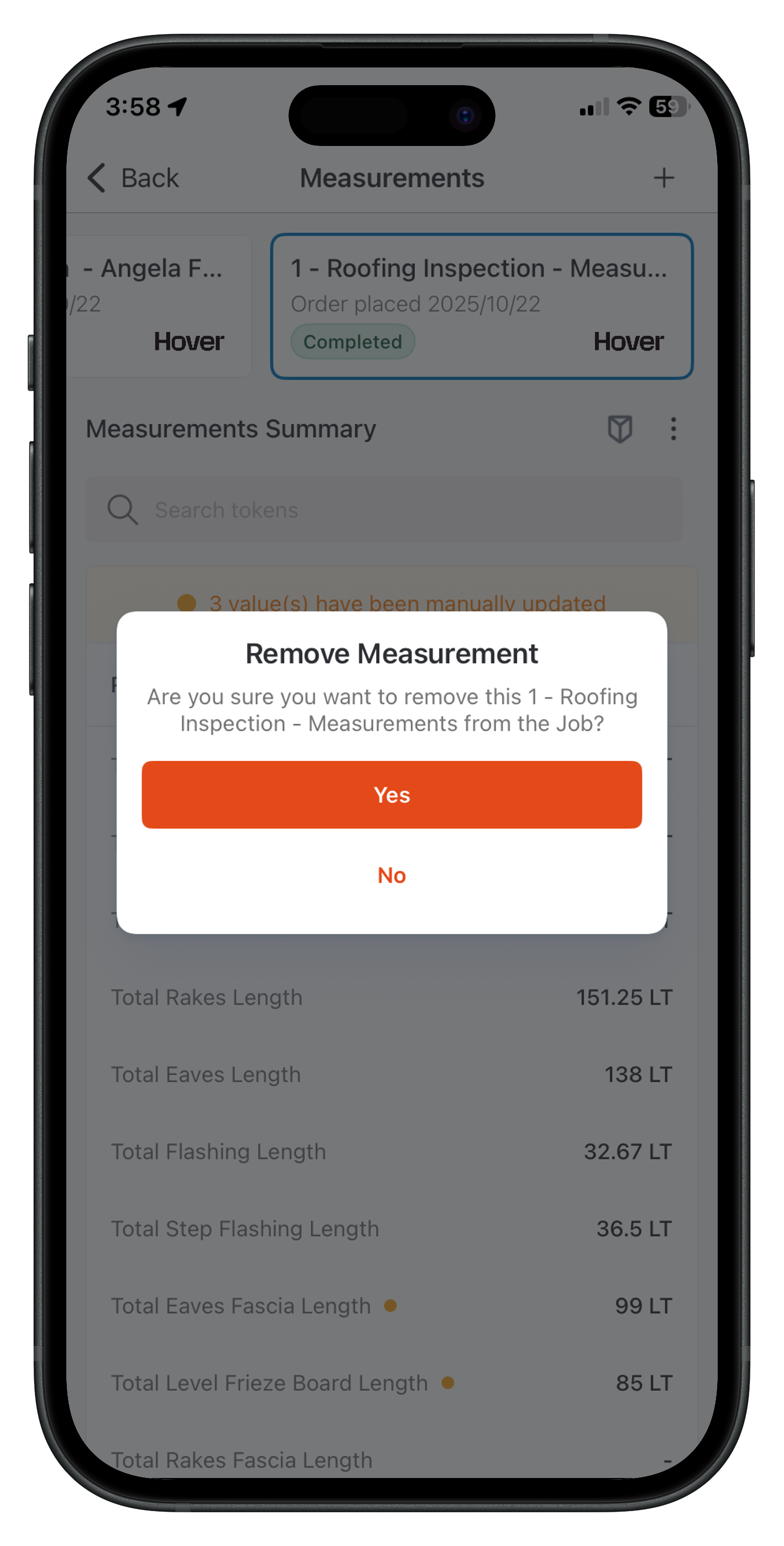 - On the confirmation dialog box, click Yes to remove the measurement from the job only.