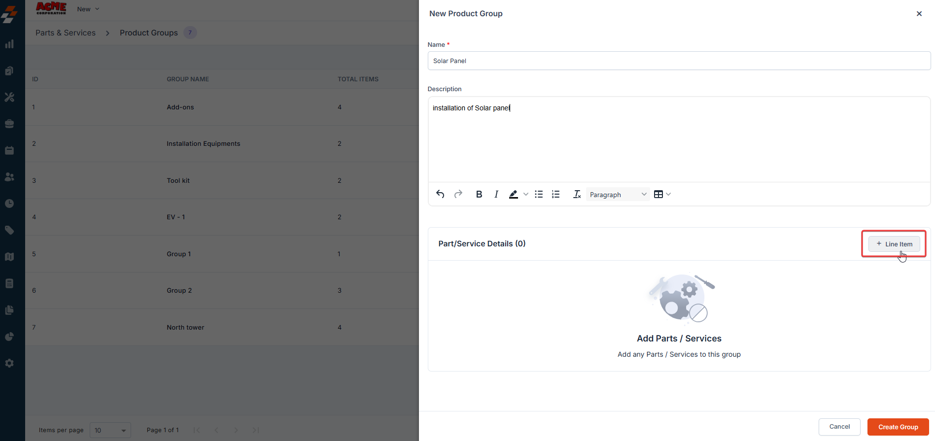 Navigation: Inventory & Pricebook-> Parts & Services -> Manage Group
