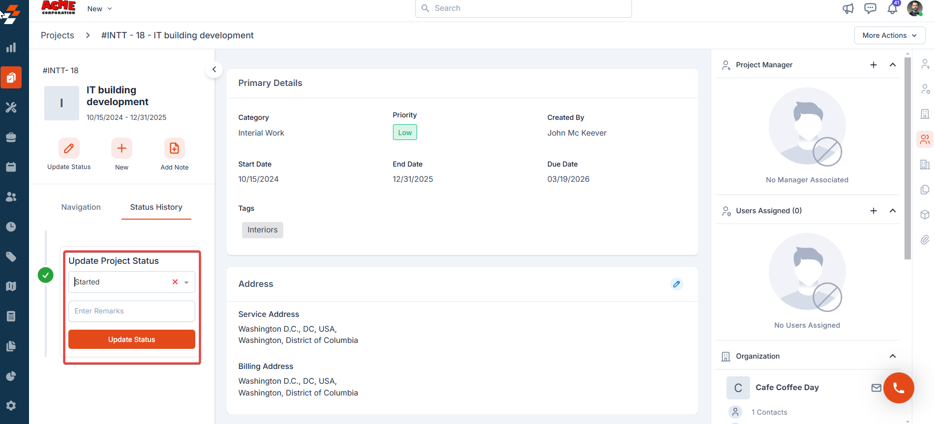 To modify any existing project details, click “More Actions” at the top right corner of the page and select ‘Update Description”