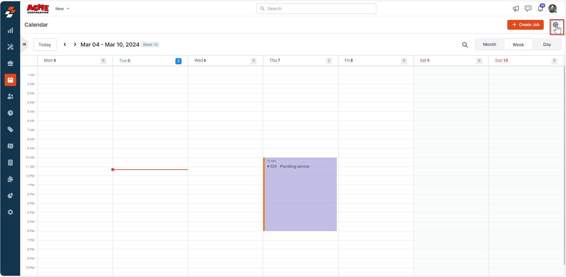 This feature allows you to adjust the height and width of individual cells within the calendar when choosing day and week view. Increasing the cell height and width gives you refined visibility of the timing associated with the job and view more information.