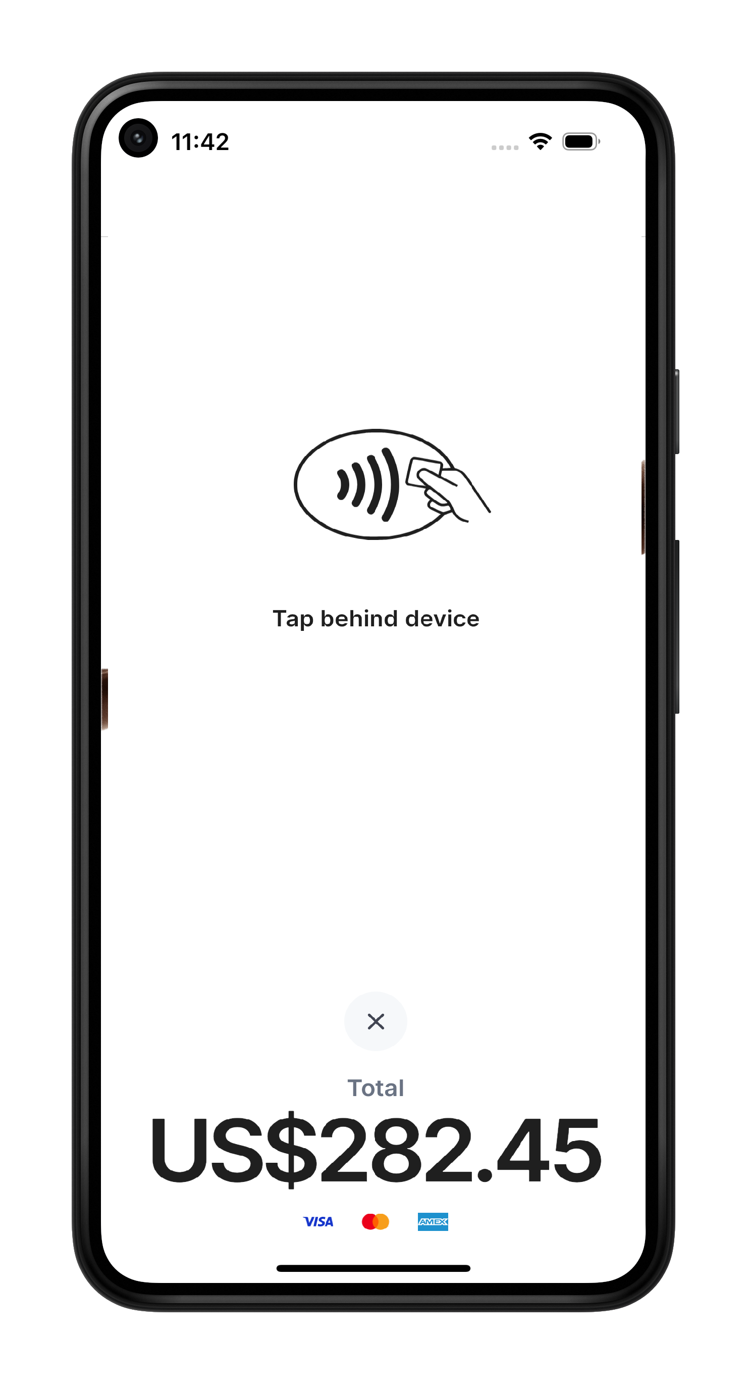 - Hold their contactless card, NFC device, or digital wallet (Apple Pay, Google Pay, Samsung Pay) over the contactless payment symbol on your mobile device.