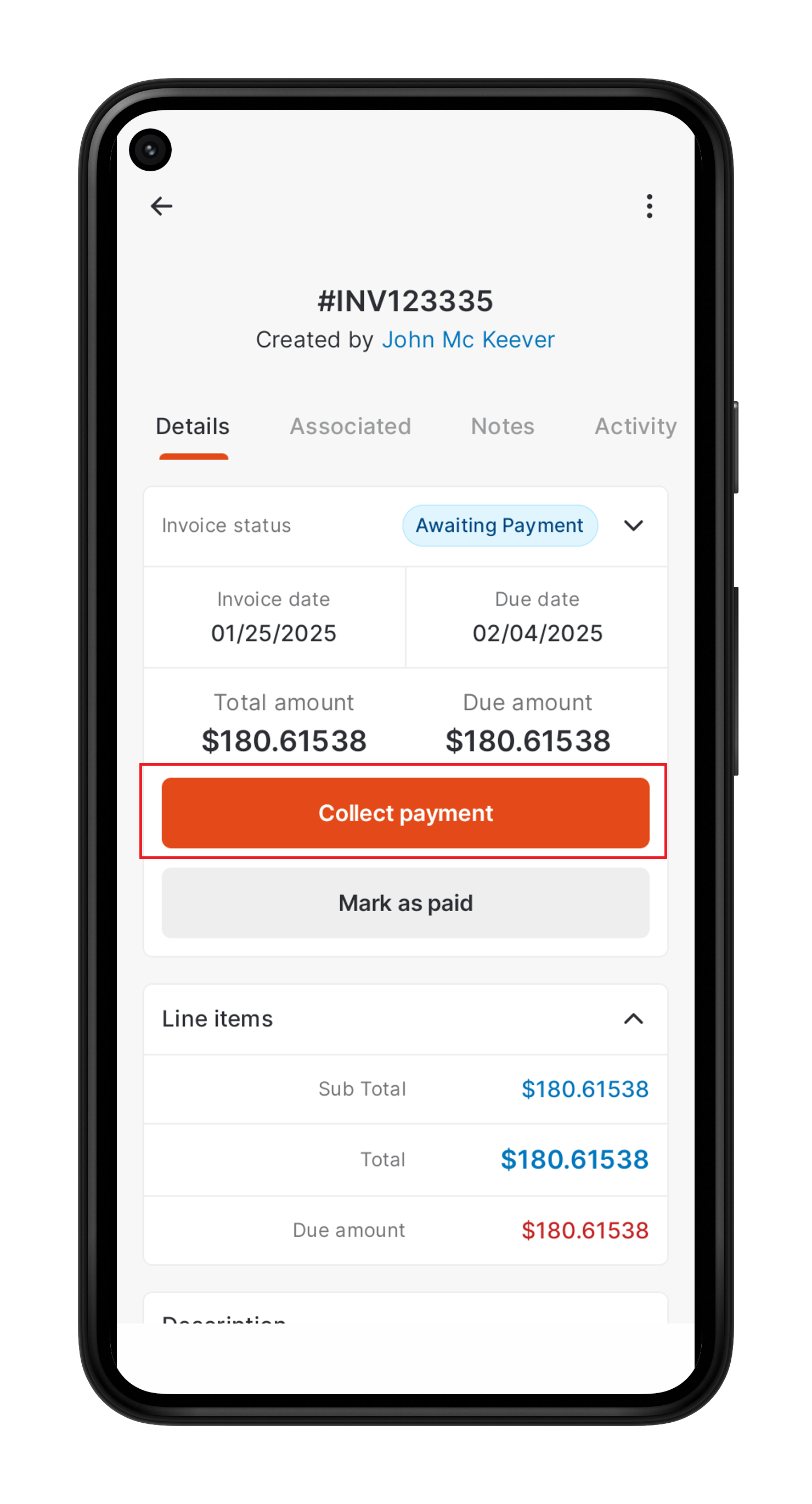 Tap Collect Payment / Collect Deposit.