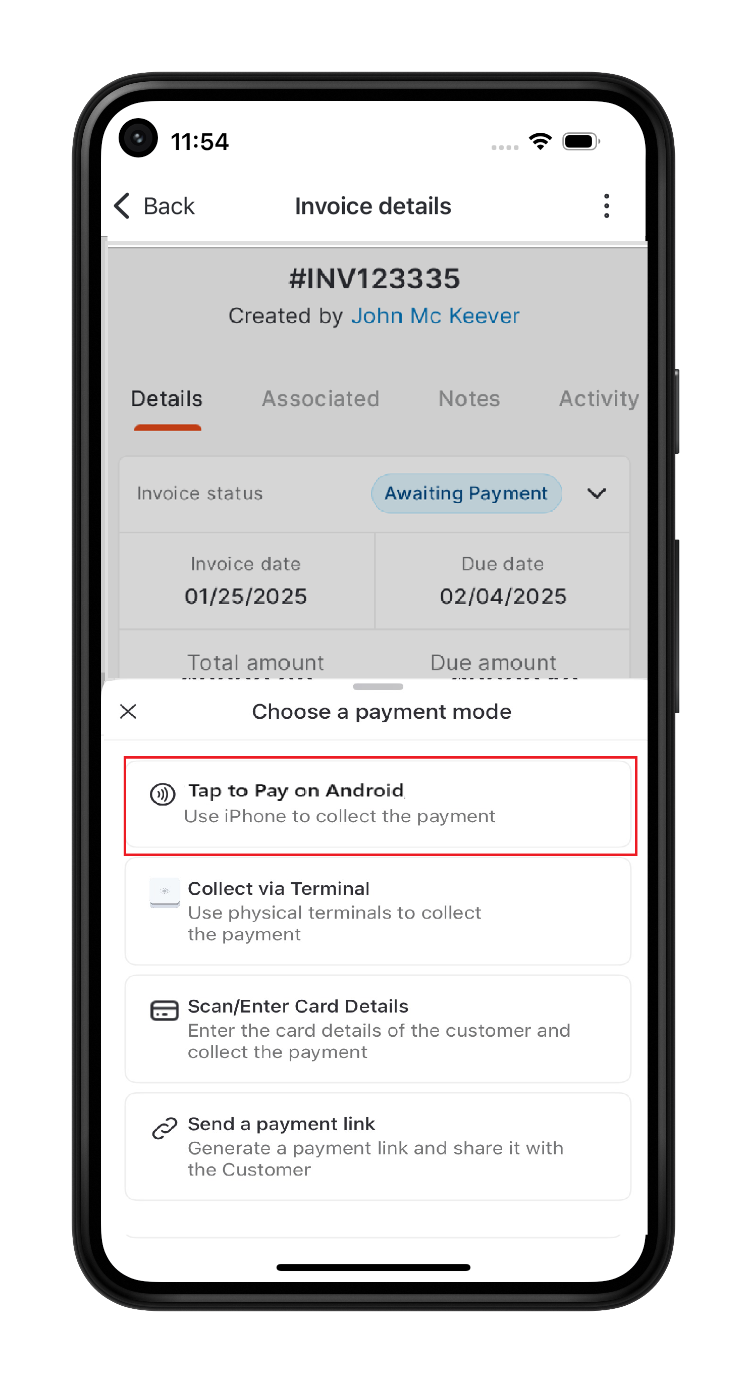 Select Tap to Pay on Android, then ask the customer to: