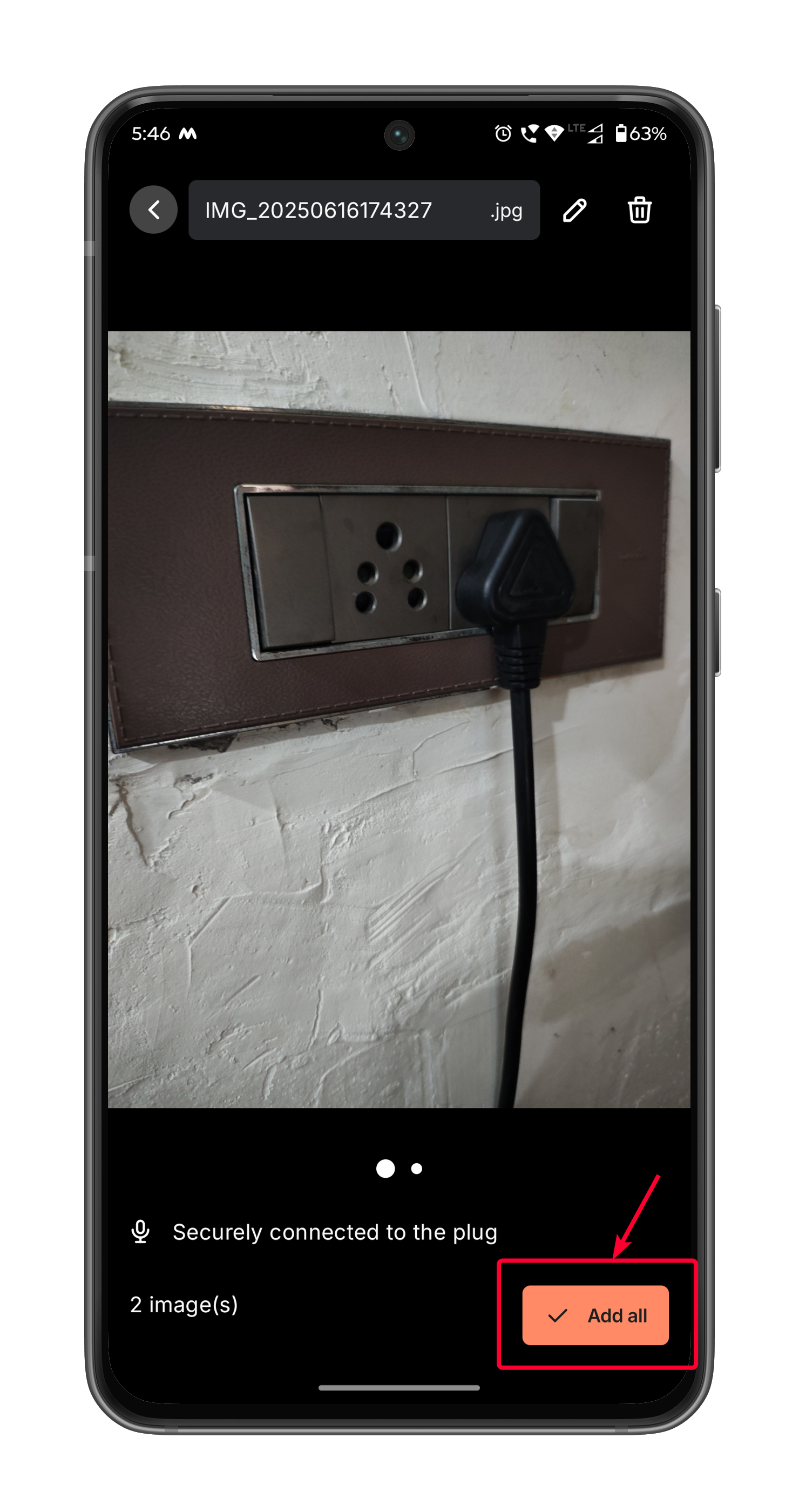 To edit the description before saving, tap the transcribed text tagged to the image during the review step.