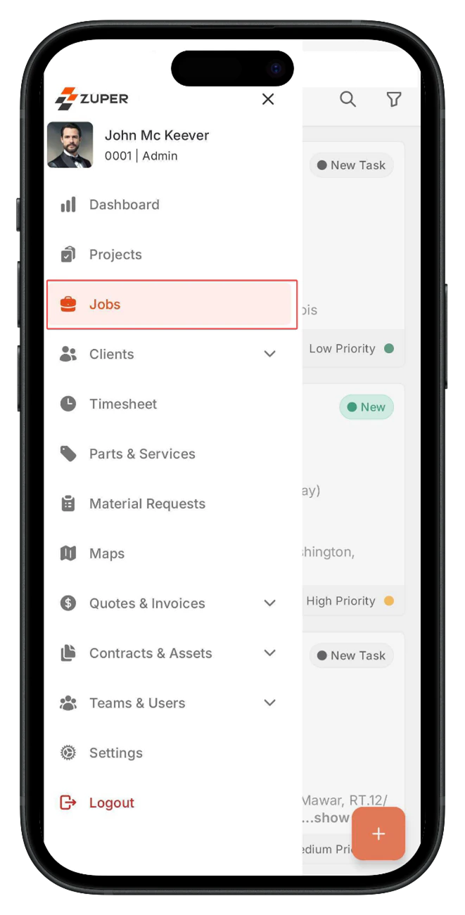 When you update a job status, and the checklist is configured with an AI walkthrough video, follow these steps:- Go to the Jobs module.