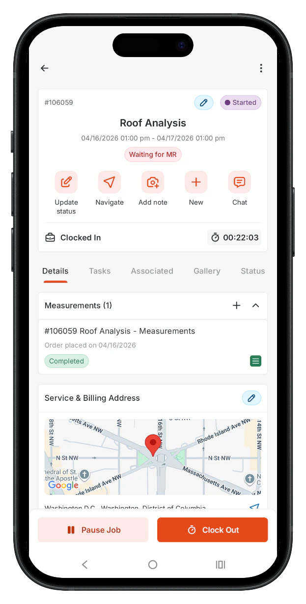 - A job checklist that appears when a field executive updates a job status.
