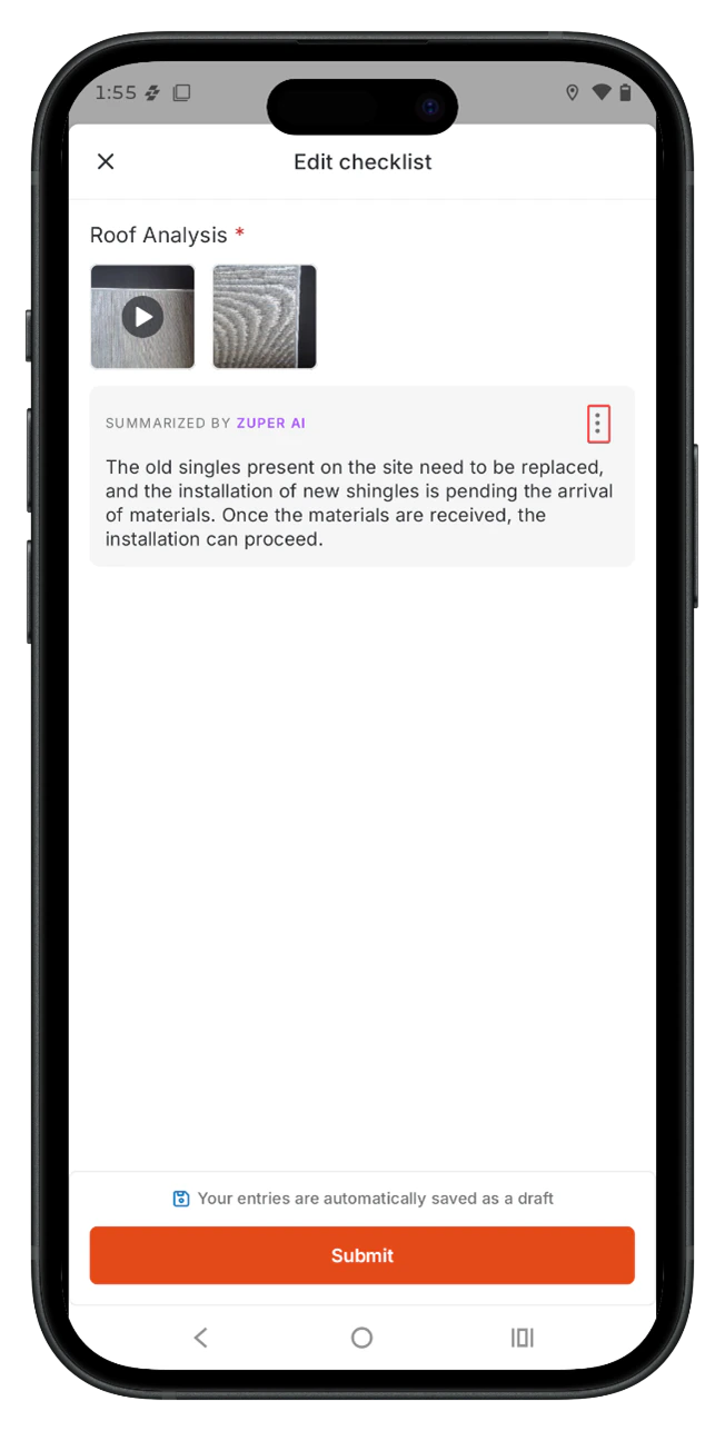 - Tap Attach all to attach the video and photos to the checklist.